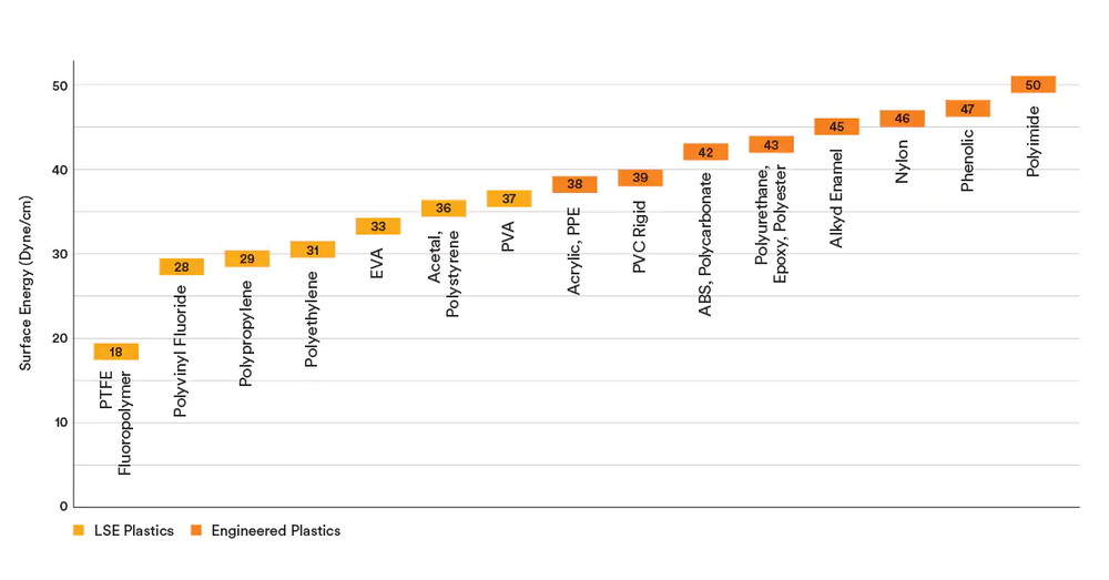 Kunststofftabelle mit Angaben zur Oberflächenenergie